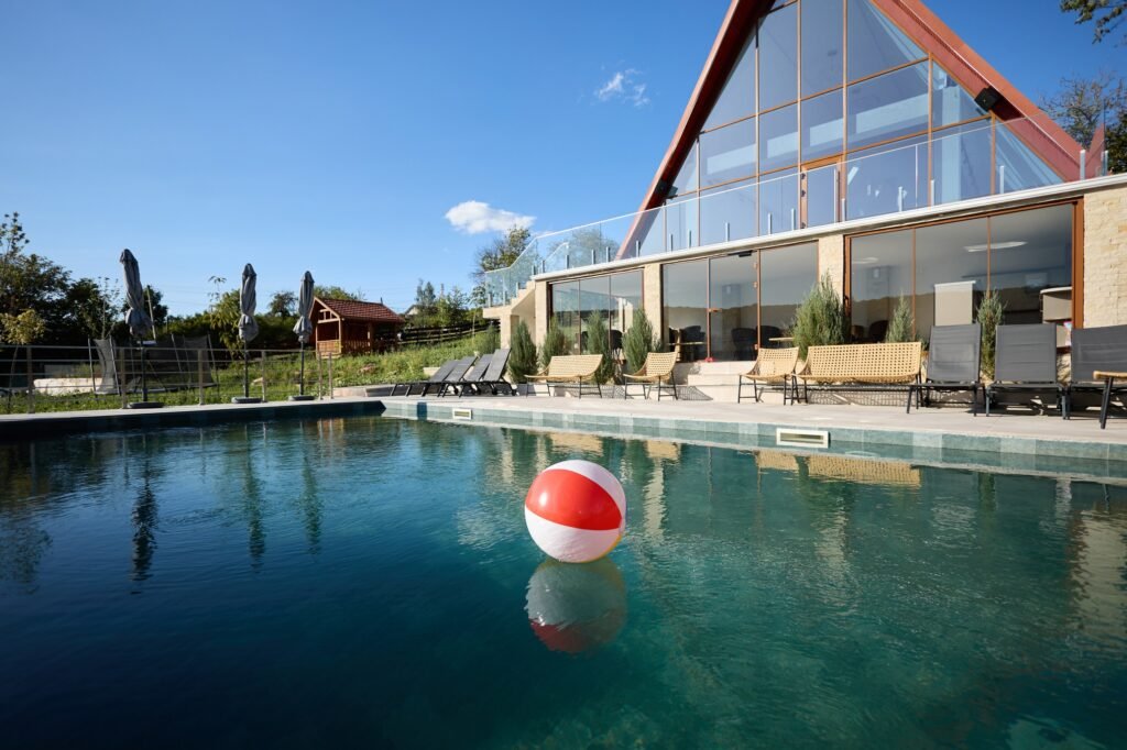 Petrece o zi cu soare la piscina noastră cu apă salină, legănat în balansoar și mângâiat de soare
