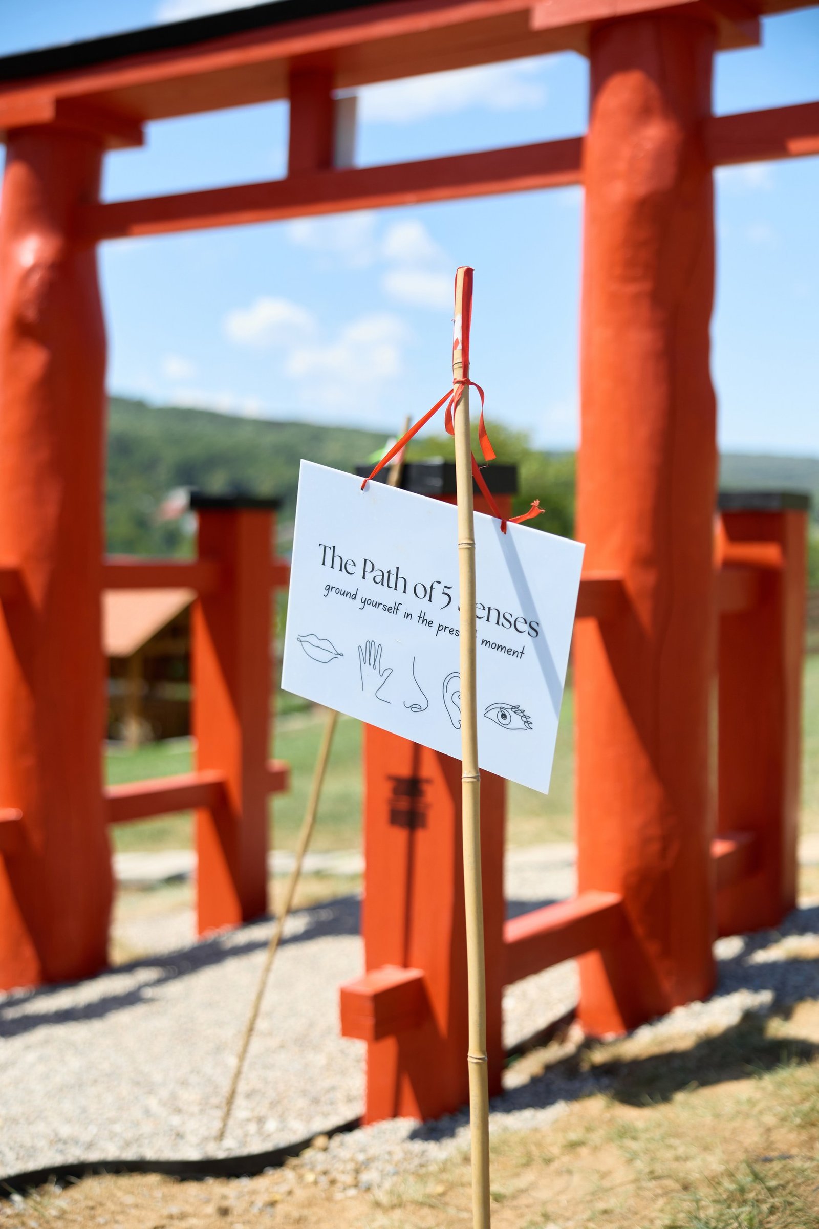 Camerele sunt minimaliste, cu vedere spre pădure și saltele ortopedice. Fiecare colț are un scop: spații de lectură, foișoare, o grădină a celor cinci simțuri, labirint simbolic și un cerc de foc. Sala de evenimente primește până la 80 de persoane, iar bucătăria noastră servește meniuri vegane și vegetariene pentru fiecare retreat.